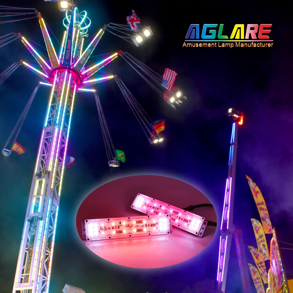 At Aglare amusement lighting, we are proud to offer a wide range of lighting solutions for fairground projects of all sizes. Our DC24V 24LEDS RGB+W programmable LED bar lights is the perfect choice for adding a vibrant and colorful touch to amusement ride ferris wheels and fairground LED lights.